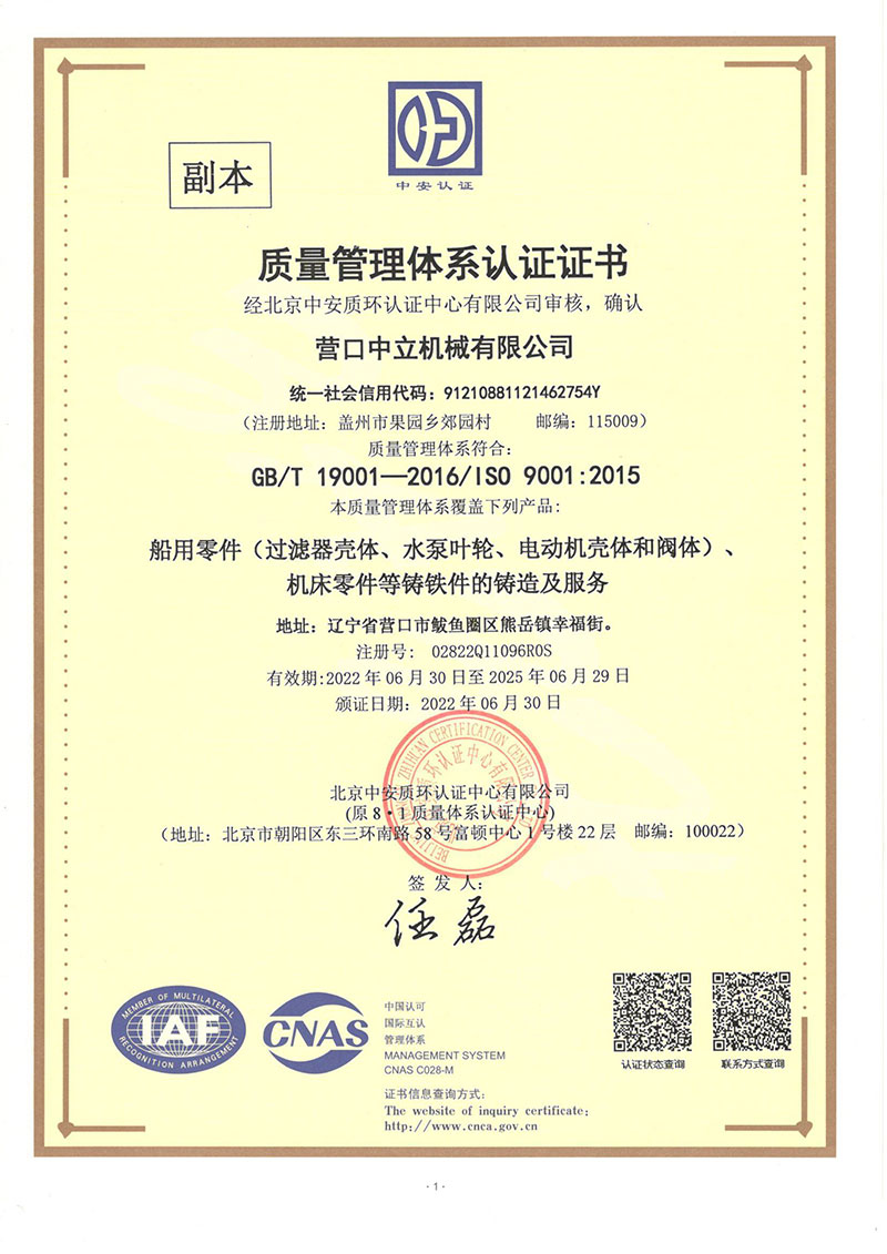 營(yíng)口中立機(jī)械有限公司位于營(yíng)口市鲅魚圈區(qū)熊岳鎮(zhèn)幸福街,成立于1982年,占地面積15000平方米,建筑面積10000平方米,是從事高性能鑄鐵件生產(chǎn)的專業(yè)廠家。年生產(chǎn)能力5000噸。鑄造采用電爐熔煉呋喃樹脂砂造型先進(jìn)工藝生產(chǎn),產(chǎn)品具有材質(zhì)性能高、形狀復(fù)雜、尺寸精度、表面美觀等特點(diǎn)。多年來(lái)產(chǎn)品主要出口日本、德國(guó)及英美等國(guó)家,產(chǎn)品種類有機(jī)床、電機(jī)、船用閥門水泵、工程機(jī)械等千余品種鑄件或加工配套產(chǎn)品。